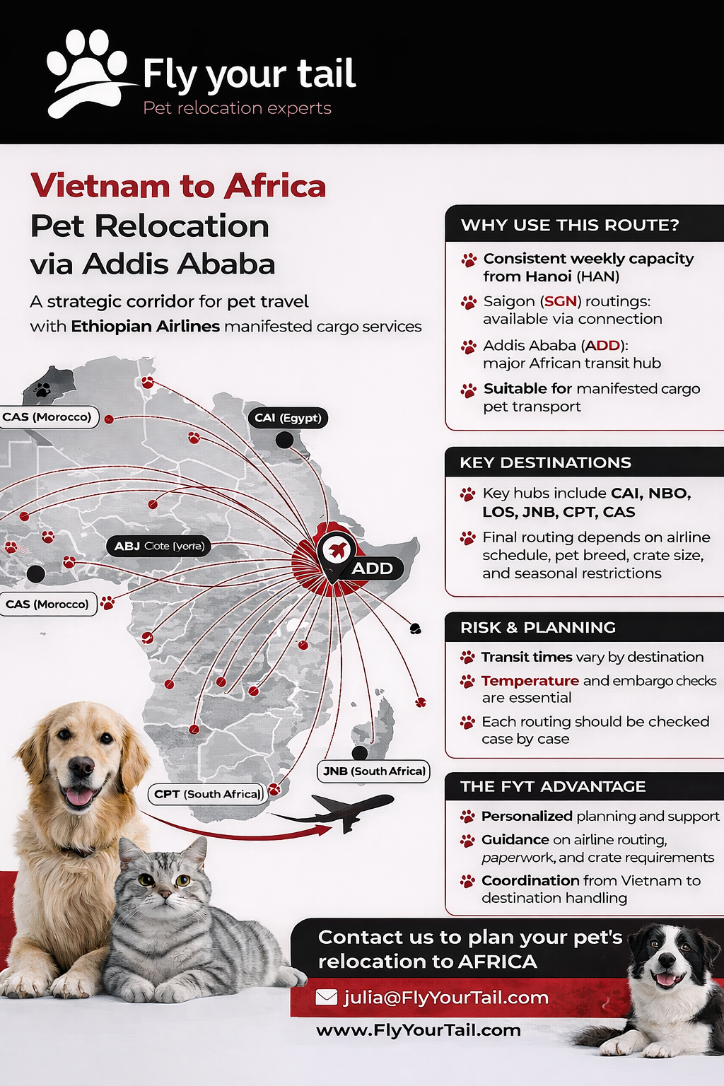 If you are planning to relocate your pet to Africa, we can assess your case and provide a tailored plan.